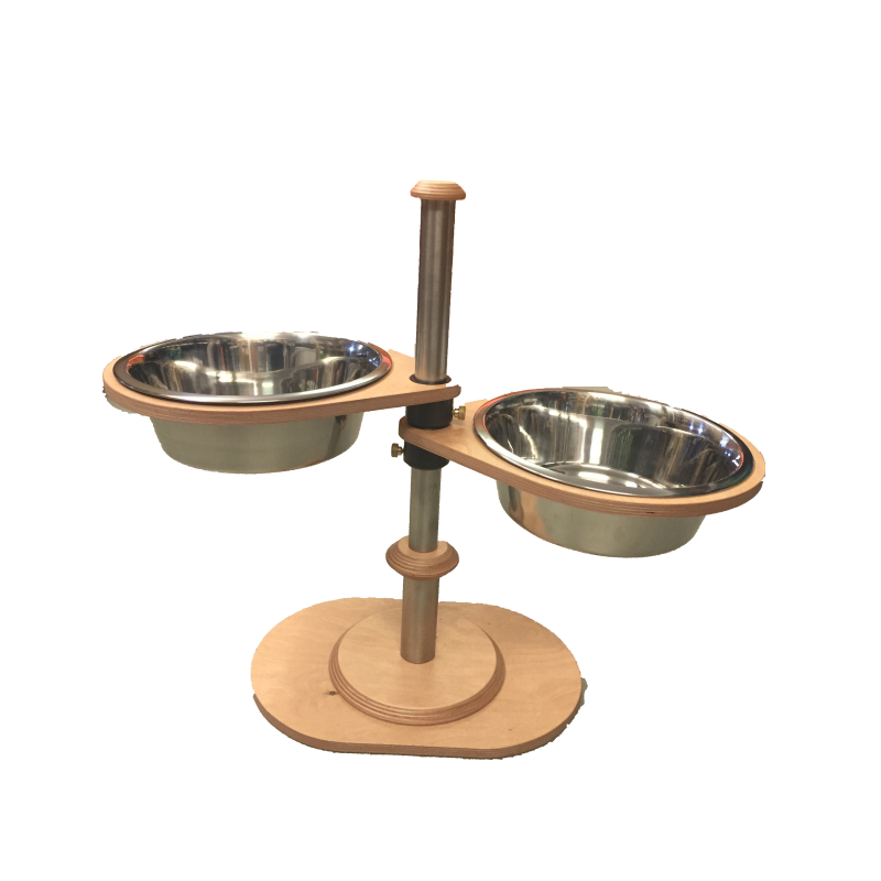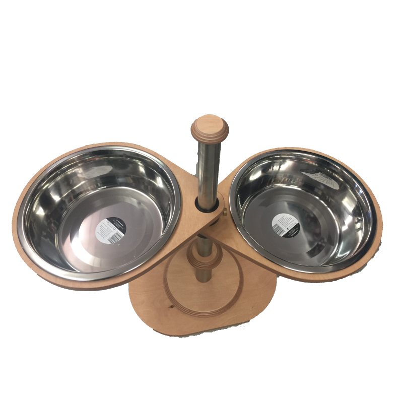 Napfständer Edelstahl-Multiplex . Diese einzeln verstellbare Napfständer lässt sich in Sekundenschnelle auf jede beliebige,millimetergenaue Höhe einstellen.Endlich ein Modell, das nicht nur schön anzuschauen sondern auch zeckmässig ist. Ein Futterständer der mitwächst. Durch das hohe Eigengewicht wackelt nichts und durch die präzise Einpassung der Näpfe gibt es kein Rappeln und Klappern.