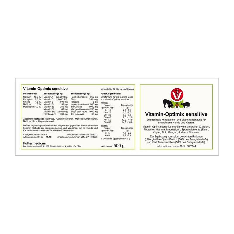 Die optimale Mineralstoff- und Vitaminergänzung INKL. KALZIUM für erwachsene emfindliche Hunde und Katzen zur Ergänzung von selbst zubereiteten Rationen aus Fleisch, Kartoffeln/Hirse, Ölen. Kann für Rohfleisch-Fütterung Barf oder für gekochtes Futter verwendet werden.