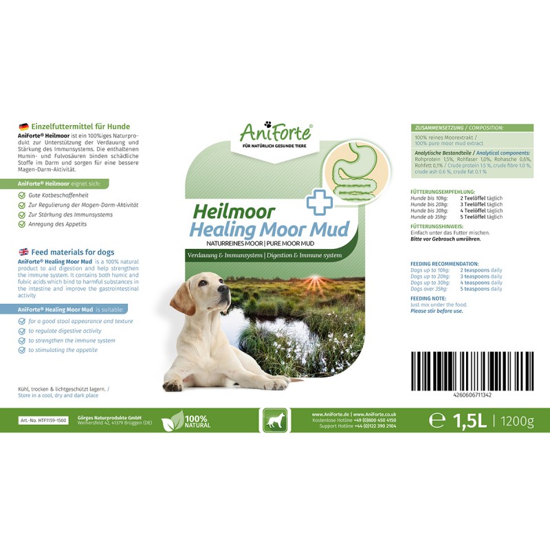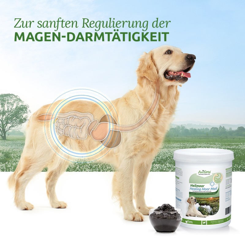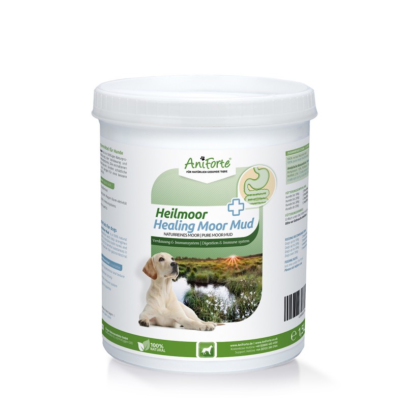 AniForte® Heilmoor ist ein 100%iges Naturprodukt zur Unterstützung der Verdauung und Stärkung des Immunsystems. Die enthaltenen Humin- und Fulvosäuren binden schädliche Stoffe im Darm und sorgen für eine bessere Magen-Darm-Aktivität.